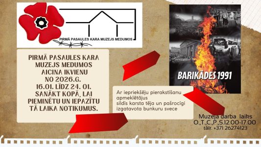 /Visi ir laipni aicināti apmeklēt Pirmā pasaules kara muzeju Medumos Barikāžu aizstāvju dienās.
